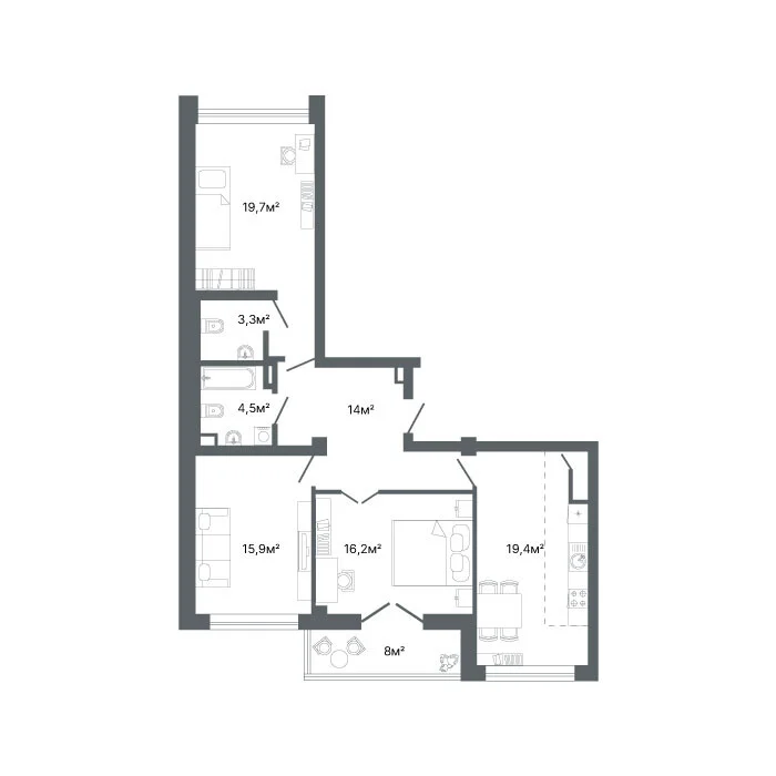 3-комнатная  93 м2