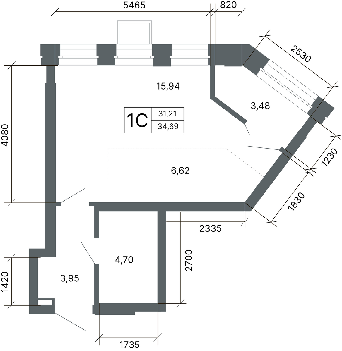 Студия 34.4 м2