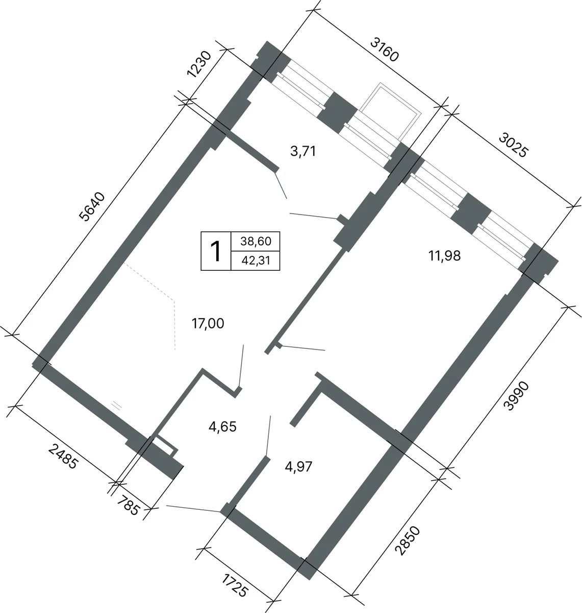 1-комнатная  42.2 м2