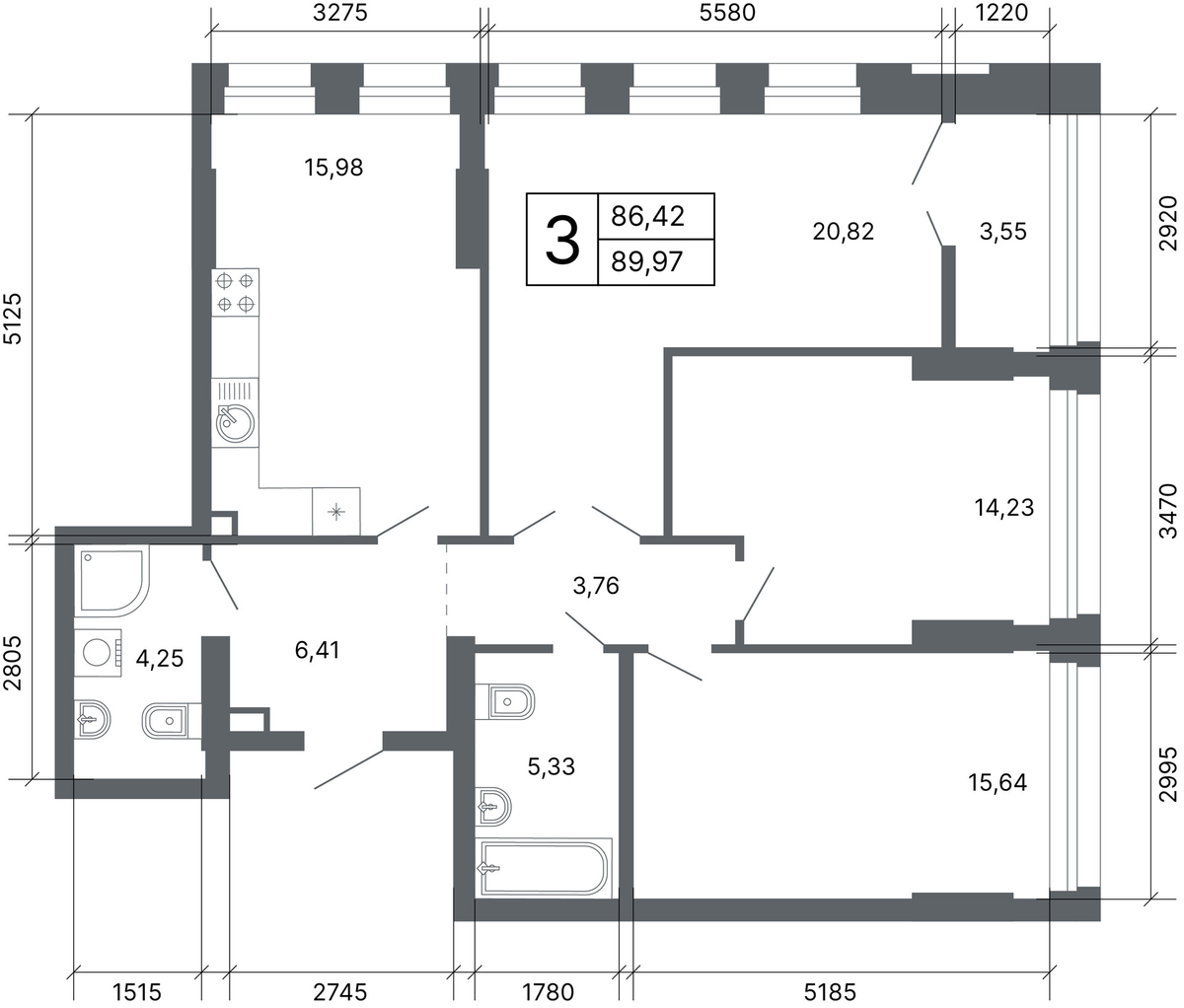 3-комнатная 88.6 м2