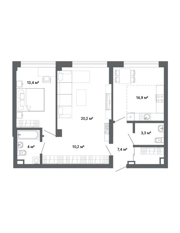 2-комнатная  73.6 м2