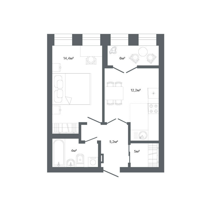 1-комнатная 42 м2