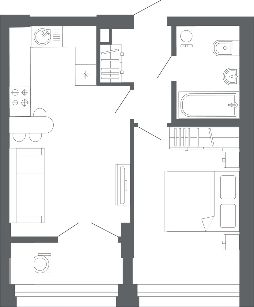 Такой формат помогает зонировать пространство под разные потребности.Для молодой пары это возможность организовать уютное рабочее место или зону для хобби на одном из уровней, сохраняя личное пространство. Для семьи — место, где родители могут расслабиться на первом этаже, а ребёнок играть или учиться на втором. И никто никому не мешает.