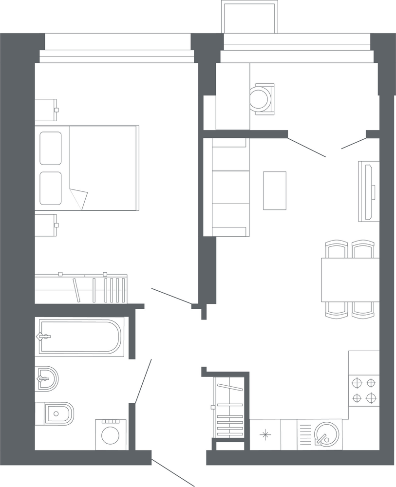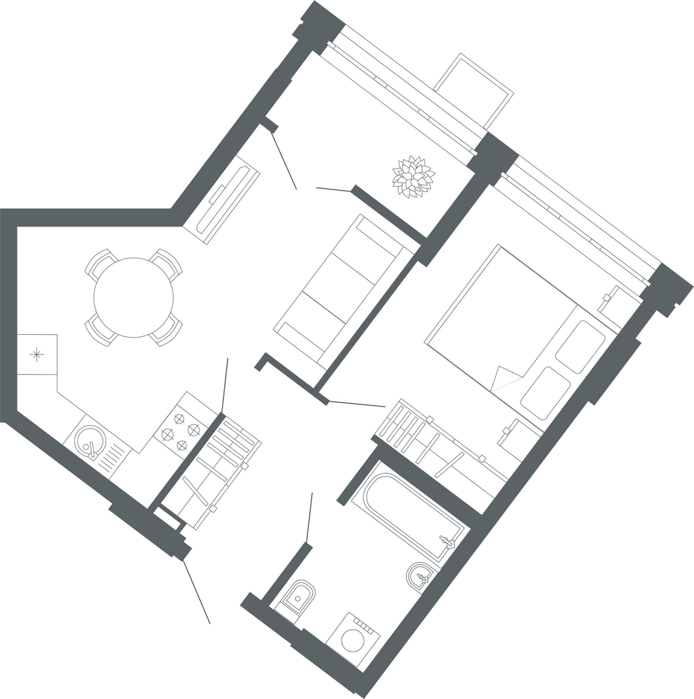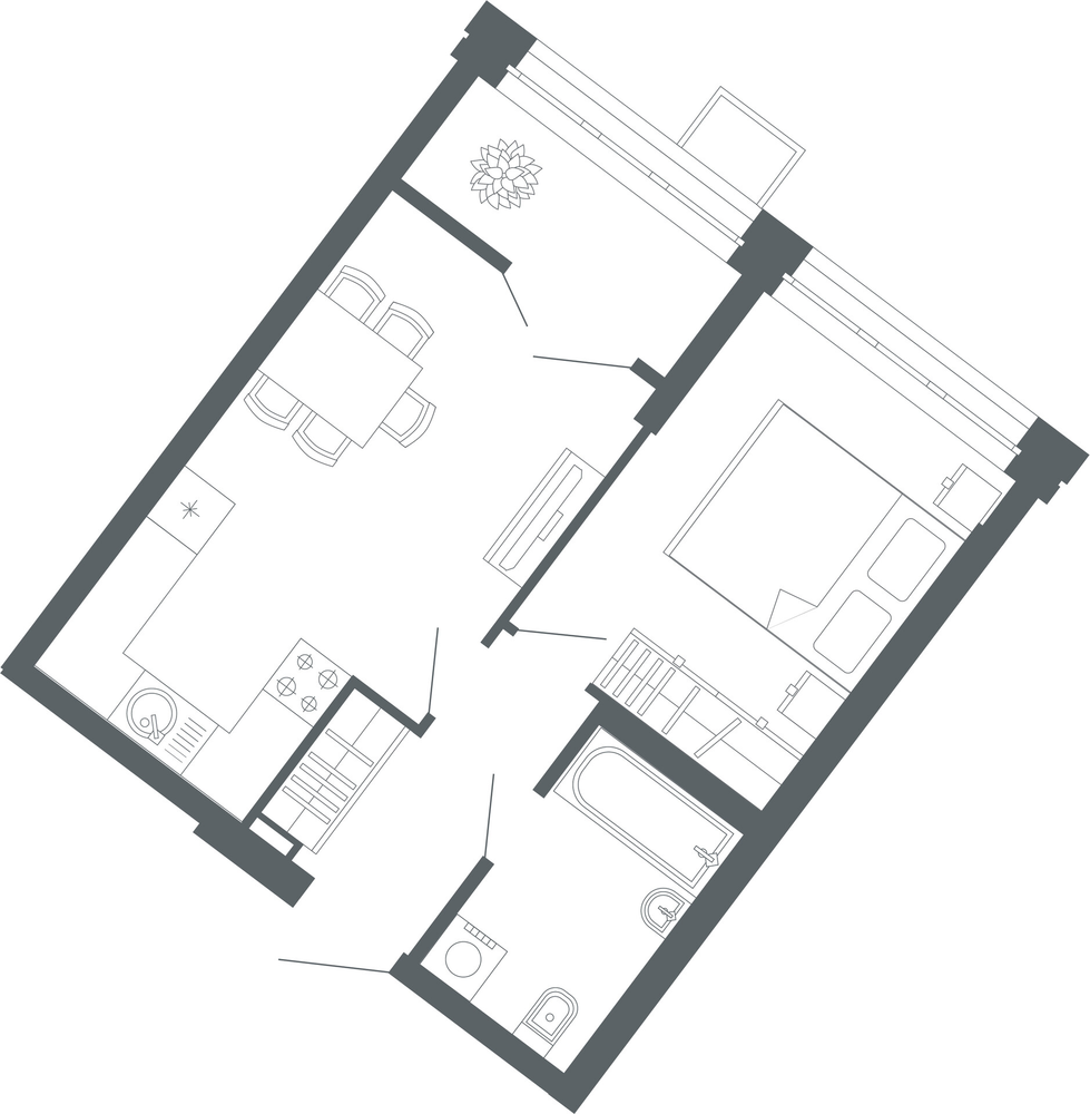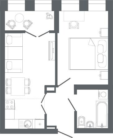 1-комнатная  42.2 м2