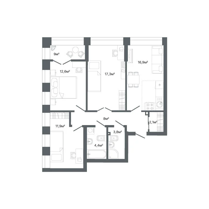 3-комнатная 80.7 м2
