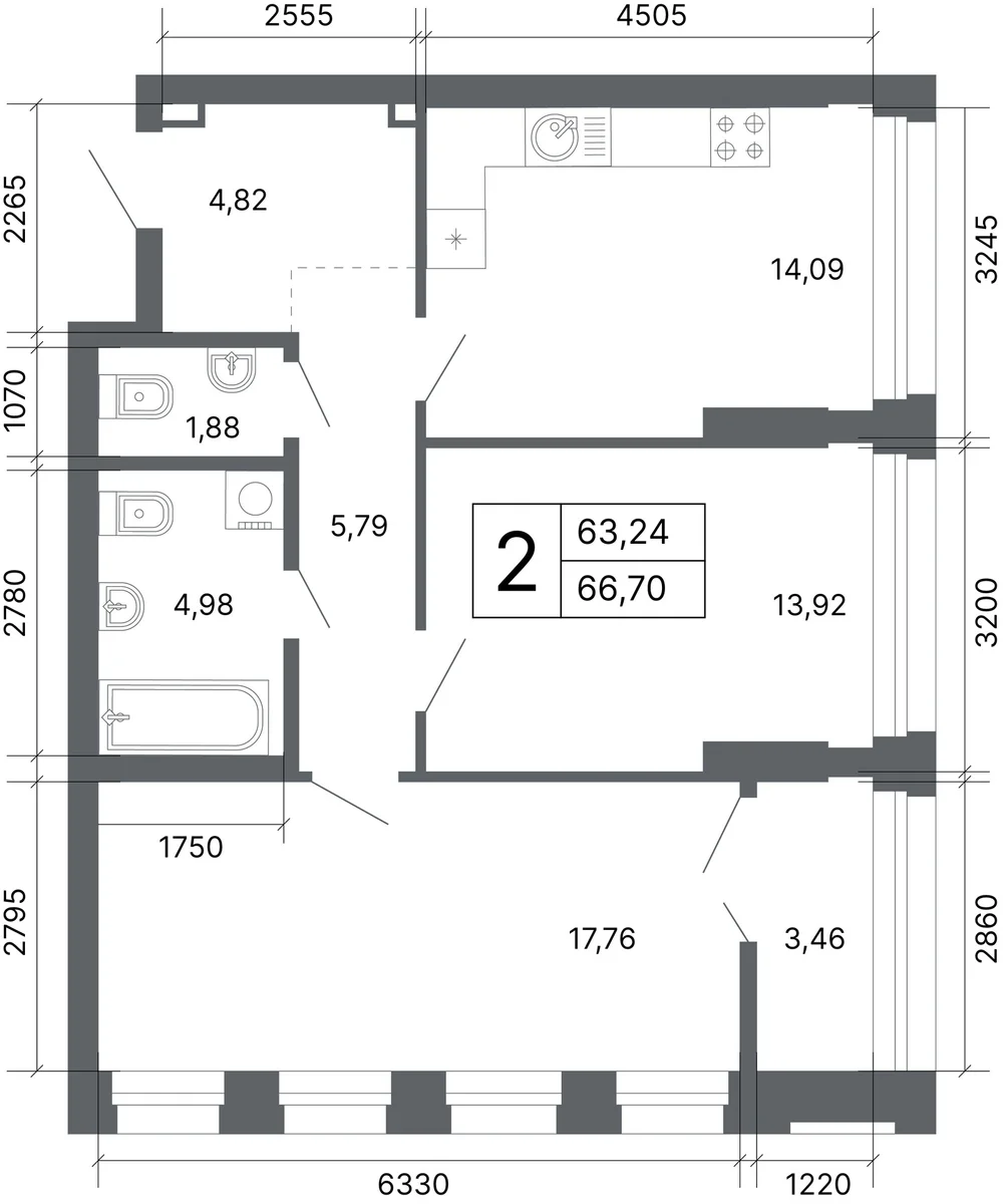 2-комнатная  66.4 м2
