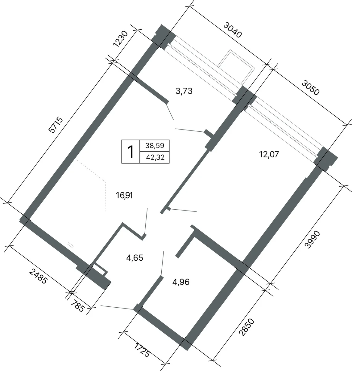 1-комнатная 41.7 м2