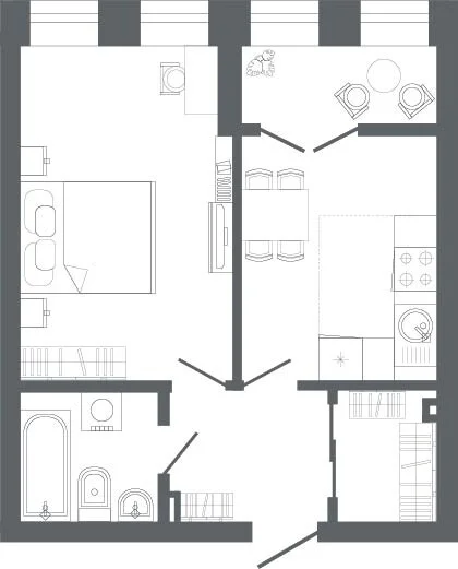 Такой формат помогает зонировать пространство под разные потребности.Для молодой пары это возможность организовать уютное рабочее место или зону для хобби на одном из уровней, сохраняя личное пространство. Для семьи — место, где родители могут расслабиться на первом этаже, а ребёнок играть или учиться на втором. И никто никому не мешает.