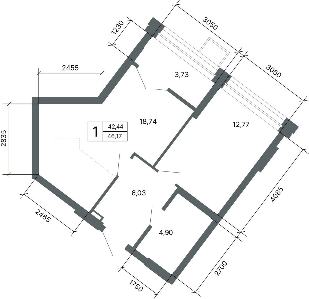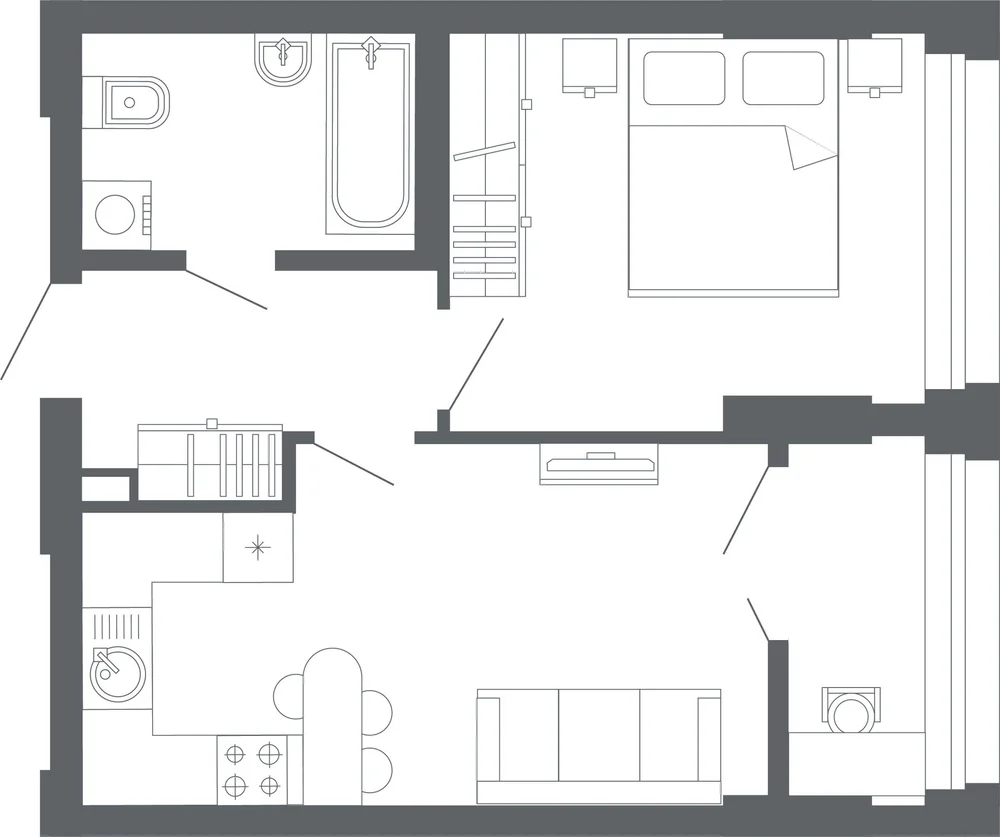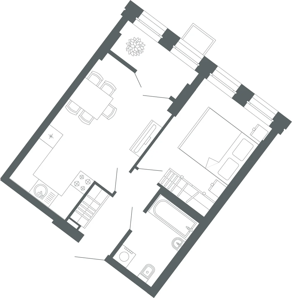 1-комнатная  45.7 м2