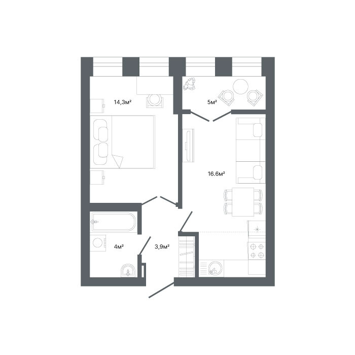1-комнатная  42.1 м2