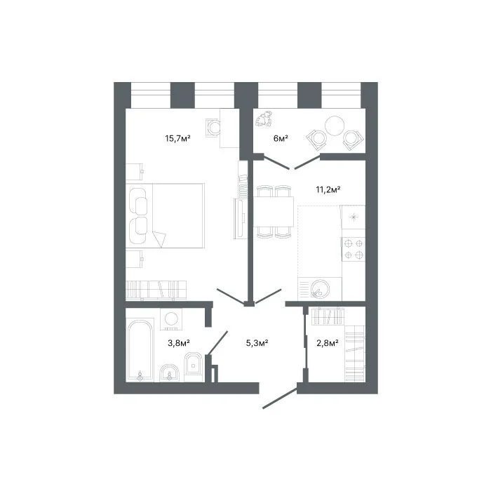 Такой формат помогает зонировать пространство под разные потребности.Для молодой пары это возможность организовать уютное рабочее место или зону для хобби на одном из уровней, сохраняя личное пространство. Для семьи — место, где родители могут расслабиться на первом этаже, а ребёнок играть или учиться на втором. И никто никому не мешает.