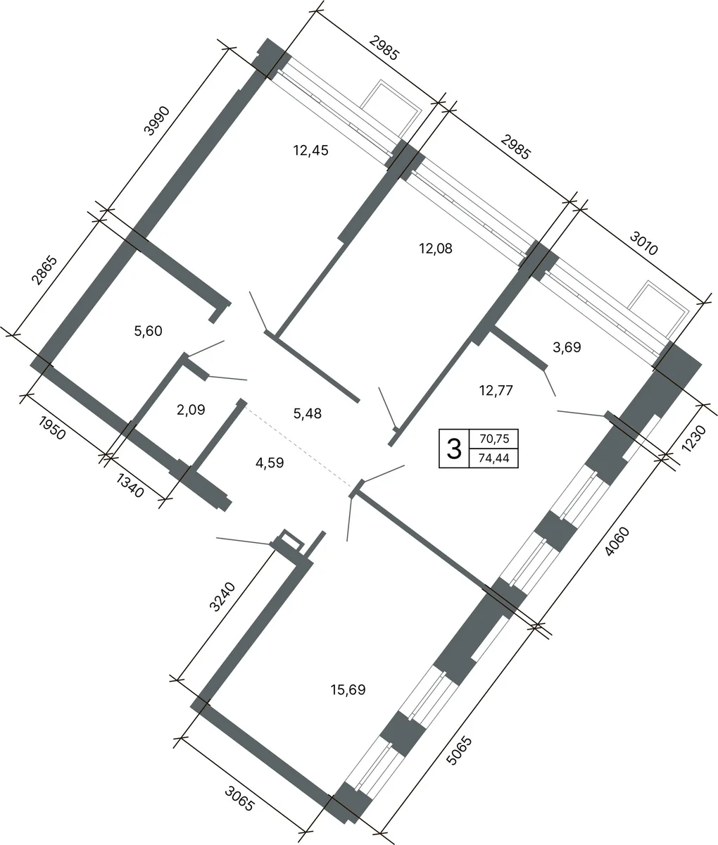 Пространство продумано до мелочей: отдельная ванная и гардеробная создают приватную зону для отдыха и заботы о себе.  Ещё одно необычное решение — стильное окно в ванной с видом на город. Такие решения подойдут тем, кто любит неординарность во всем, даже в организации пространства.